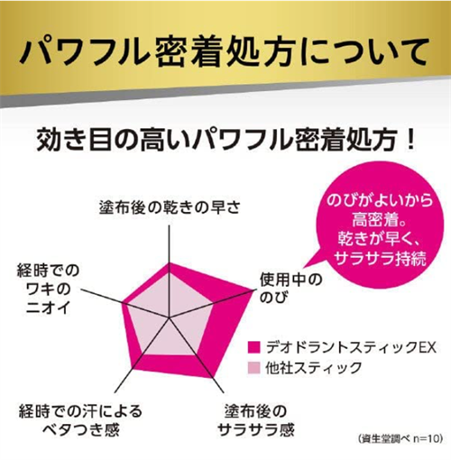エージーデオ24 デオドラントスティックDXは、伸びの良さと高い密着性を実現する特性的な処方を採用しています。