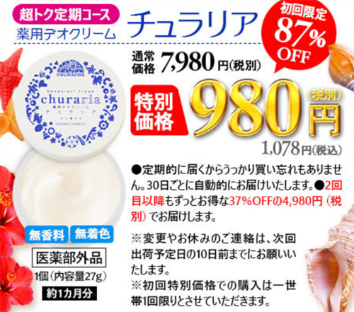 チュラリアは質の高いデオクリームなので製造コストもかかり販売価格は一般的な商品よりも高いです。