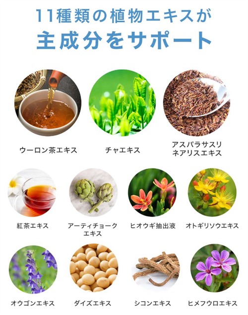 | 特別な成分 | W有効成分と11種類の植物エキス |