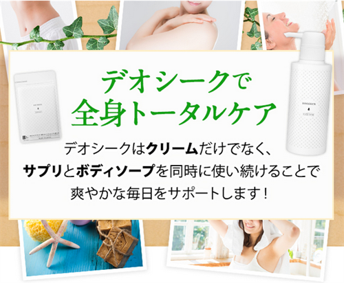 殺菌効果が高くあらゆるタイプのニオイケアに効果を発揮してくれるデオシークはボディソープ・クリーム・サプリを併用することがベストな効果を得る方法です。