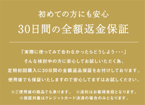 返金保証 30日全額返金保証(初回分、クレジットカード決済のみ)
