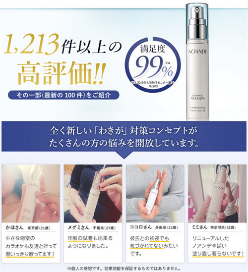 悪い口コミでは効果がないという意見がまれにありましたが、ノアンデは肌環境を整え有効成分を肌に浸透させるほど消臭力を発揮するので、数回使っただけでは本当の威力は実感できないと思います。